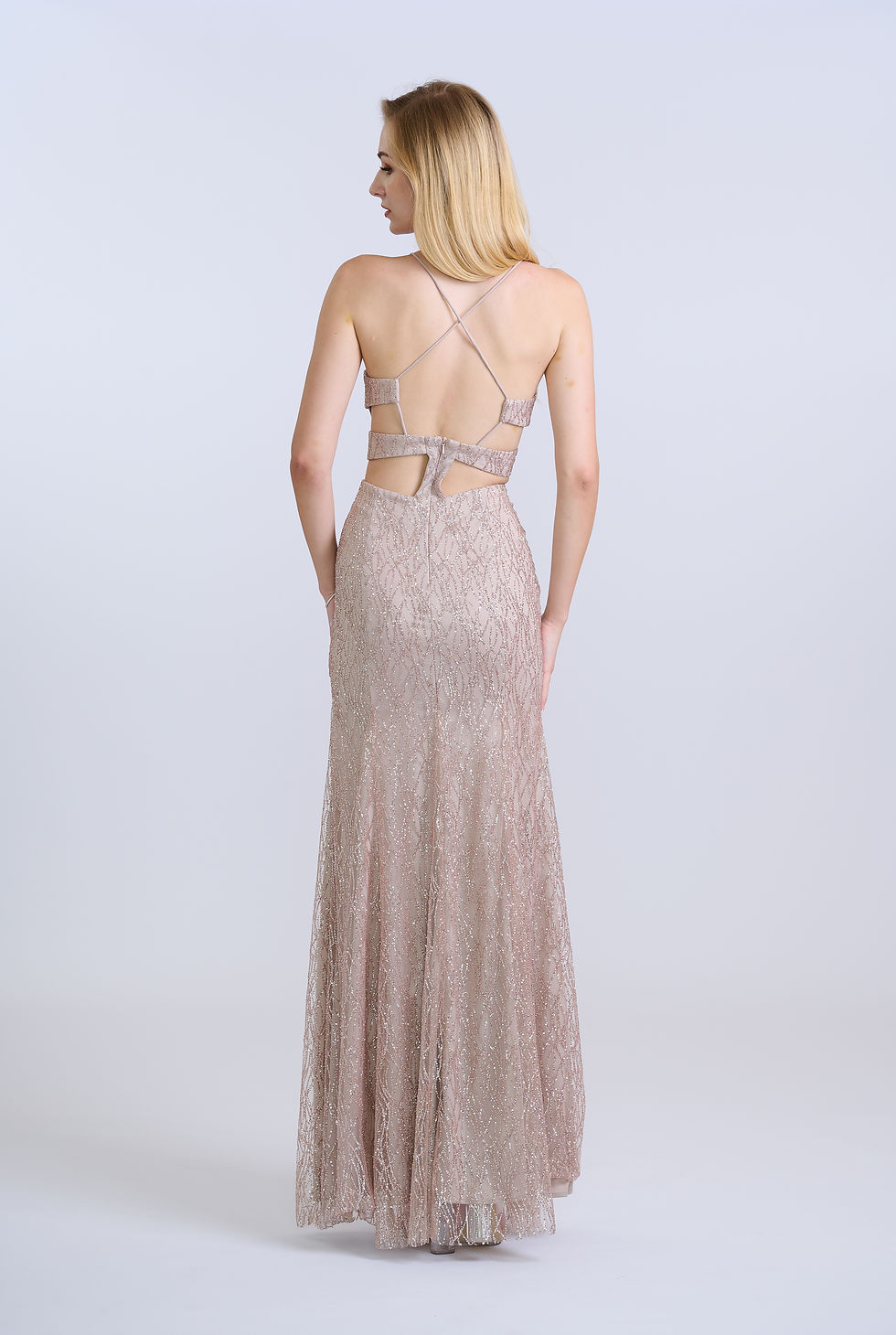 Blush Sequined Sleeveless Column Gown